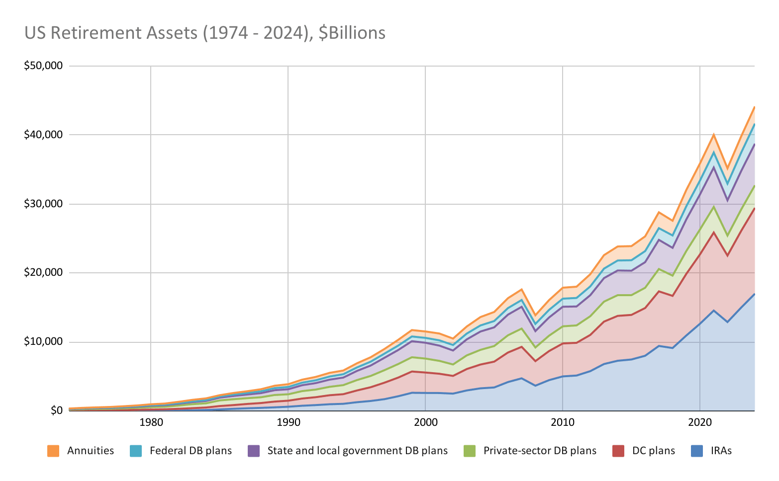 From the perspective of asset managers, however, whether retirement savings are pooled in traditional defined-benefit pensions or something like a 401(k) makes little difference. They will happily work with them all and have done so as the collective size of retirement assets across all vehicles has ballooned to $44 trillion.