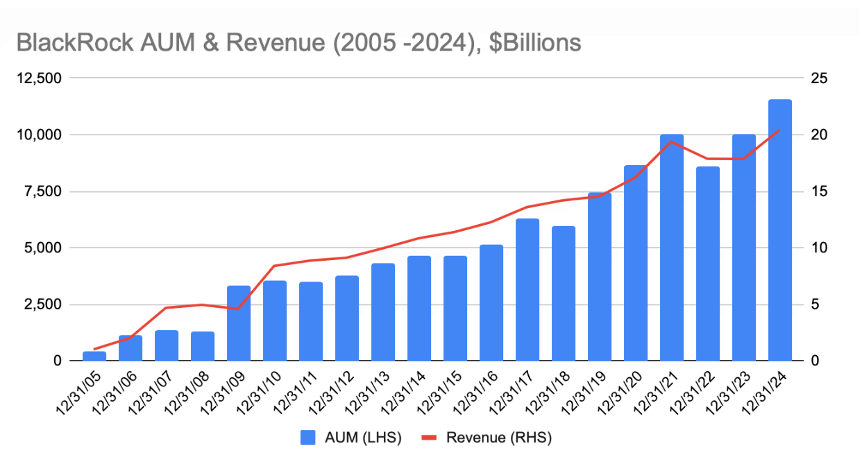 [3] Data from BlackRock, Inc., Form 10-K filings for the years ended December 31, 2005 through December 31, 2024, available at https://www.sec.gov/edgar/search/.